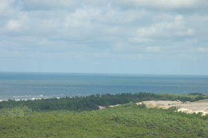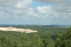 Łeba jest położona bezpośrednio nad samym morzem na wydmowym terenie. Z jej zachodniej strony w odległości ok 10km w Słowińskim Parku Narodowym znajdują się ruchome wydmy . Jedynym dostępnym miejscem na wydmach jest Góra Łącka, przez którą prowadzi szlak turystyczny. Cała trasa na wydmy to ponad 20km. Zalecana droga na wydmy prowadzi przez miejscowość Rąbka. Można także wybrać się plażą na wydmy i wrócić przez las robiąc koło ok 21km w sumie. W Rąbce atrakcją dla wędrujących na wydmy jest poniemiecka wyrzutnia rakiet z czasów II wojny światowej. Niemcy prowadzili w tym miejscu badania nad rakietami V1 i V2. Usytuowanie na wydmach (trudno dostępnym miejscu) było dobrym miejscem do prowadzenia badań i testów tych rakiet. Z czasów II wojny światowej pozostały tam tylko bunkry, i fundamenty samych wyrzutni. W chwili obecnej znajduje się tam muzeum (pod gołym niebem), gdzie można zobaczyć pozostałości obrotnicy, radzieckie wyrzutnie rakiet ziemia -ziemia, oraz wydobyte po wojnie w tym miejscu eksponaty militarne (karabiny, miny, granaty, itp) znajdujące się w gablotach oraz wystawę fotograficzną z tamtego okresu znajdującą się w jednym z bunkrów. W okolicy znajduje się także wieża widokowa, z której niestety mało widać, ponieważ las wydmowy z roku na rok jest coraz wyższy i wiele zasłania.