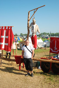 Mój projekt wybrania się na inscenizację powstał pod koniec 2009 r. od samego początku byłem pewny, że tam będę (będziemy razem z Sebastianem. Niestety tak się nie stało. Organizując wyjazd pytałem się wszystkich znajomych czy nie mają ochoty pojechać ze mną. Było parę zainteresowanych osób niestety nikt nie dopisał poza Dominikiem, który dowiedział się o wyjeździe na 3 dni przed. Ustaliliśmy na szybko co bierzemy i godzinę wyjazdu. Była to 2-ga w nocy tak by dotrzeć na pola Grunwaldu ok. 7 rano i być tam przez cały dzień. Niestety droga pokazała że będzie opóźnienie. Dotarliśmy ok. godziny 8-mej więc i tak nie było tragedii. Po zaparkowaniu samochodu w Stębarku na jakimś polu za 15zł za dzień postoju wybraliśmy się w kierunku zgodnym z ruchem pieszych których było co niemiara. Po ok. 20 minutach dotarliśmy do pierwszych osad litewskich.