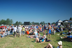 Okazało się, że poza rozłożeniem nic więcej nie robili. Zebraliśmy się więc i poszliśmy szukać toalety z wodą. Była taka w okolicy punktu informacji, który wtedy znaleźliśmy ale było już zamknięte. Chcieliśmy się umyć z kurzu jaki przez cały dzień unosił się nad polami Grunwaldu. Na nasze szczęście wcześniej zaopatrzyliśmy się w wodę z kranu dzięki czemu byliśmy samowystarczalni i umyliśmy się "z butelki". Toalety były już nieczynne, Toi-Toi'ki brudne i śmierdzące (blee...) więc sikać trzeba było pod wiatr na polu. Co do samych toalet przenośnych to było ich może ze 20 na placu centralnym co daje ok 7000 osób na jedną kabinę zakładając, że było ok 140tyś ludzi na placu a wydaje mi się że było o wiele więcej.