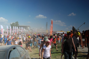 Będąc już poza tłumem zorientowałem się, że nie ma obok mnie kolegi, którego zostawiłem w cieniu pod innym drzewem. Postanowiłem że zadzwonię do niego i dowiem się gdzie jest. Niestety telefony nie działały. Można było wysłać SMS'a ale za jakimś 20tym razem. Totalnie przeładowana sieć (przynajmniej ORANGE. Wraz z kolegą szukaliśmy się ok. 5 godzin, ponieważ nasze smsy docierały z 40 minutowym opóźnieniem, więc jak ja szedłem do niego to on już był na drugim końcu i tak mijaliśmy się do wieczora.
