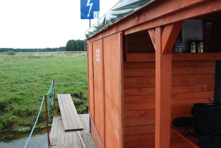 Transport tratwy samochodem na miejsce, grill, brykiet, rozpałka w wyposażeniu oraz 50 litrowa bańka z czysta wodą, której akurat nie było oraz? wychodek.