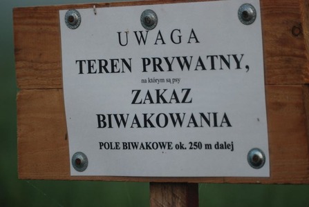 Na Tablicy był napis "Teren Prywatny - Zakaz biwakowania" i jakieś małe literki, których nie udało się odczytać.