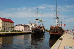 W międzyczasie dojechał "Koszaty" z rodziną (dziewczyną, jej siostrą i teściową). Wybraliśmy się z nimi do Darłówka. W Darłówku wybraliśmy się na rejs statkiem UNICUS, który trwa ok. 40 minut. Dodatkową atrakcją rejsu jest nawrót statku na kanale portowym. Statek jest na tyle długi, że aby nawrócić musi przepłynąć za zwodzony most (rozsuwany), a następnie w prawie najszerszym miejscu kanału robi nawrót o 180 stopni mieszcząc się na przysłowiową grubość gazety między brzegami kanału. Chylę czoła przed sternikiem, który tym steruje.