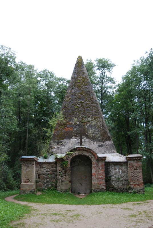 W drodze powrotnej W Baniach Mazurskich skręciliśmy w kierunku Rapy (9km), by dojechać do owej wspomnianej wcześniej Piramidy. Jest to grobowiec w kształcie piramidy. Przed piramidą oczywiście parking w lesie (w sumie za piramidą, ponieważ przejechaliśmy kierując się na wielki wiszący między drzewami baner) płatny 3zł. Do piramidy trzeba dojść ok 100m drogą i skręcić w las. Od drogi do piramidy prowadzi ścieżka dydaktyczne z tablicami informacyjnym na temat roślinności tego lasu. Wyjechaliśmy z Rapy i udaliśmy się do domu czyli do Mikołajek. W domu sprawdziłem w internecie lub książce o mazurach (Polska Niezwykła - Mazury wyd. Demart) informacje na temat miejscowości Banie Mazurskie. Okazuje się, że jest to miejscowość, w której 90% mieszkańców to przesiedleńcy z kresów wschodnich, co wyjaśnia akcent ludzi, których spotkałem w sklepie.